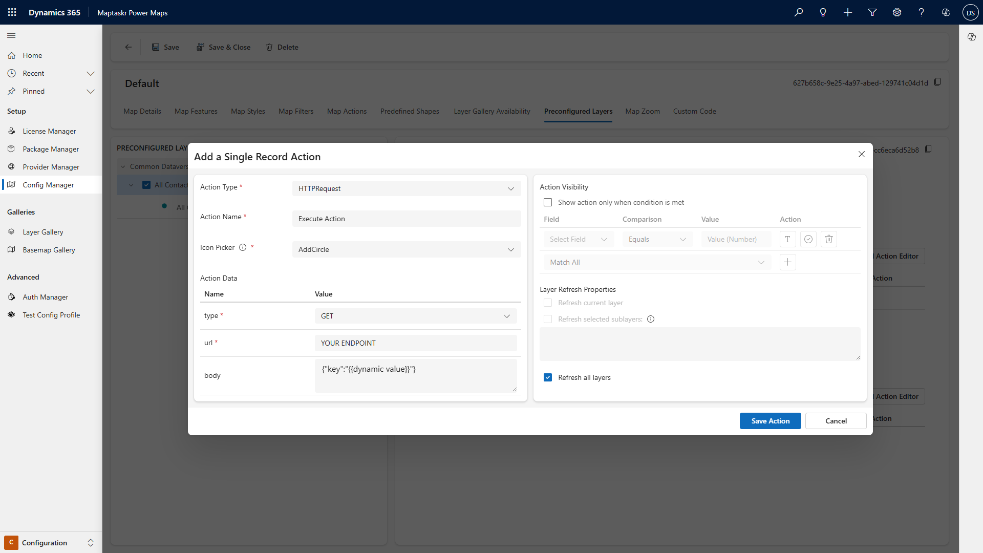 Layer actions can be configured for individual layers or applied to all layers. Follow these steps for each action type: